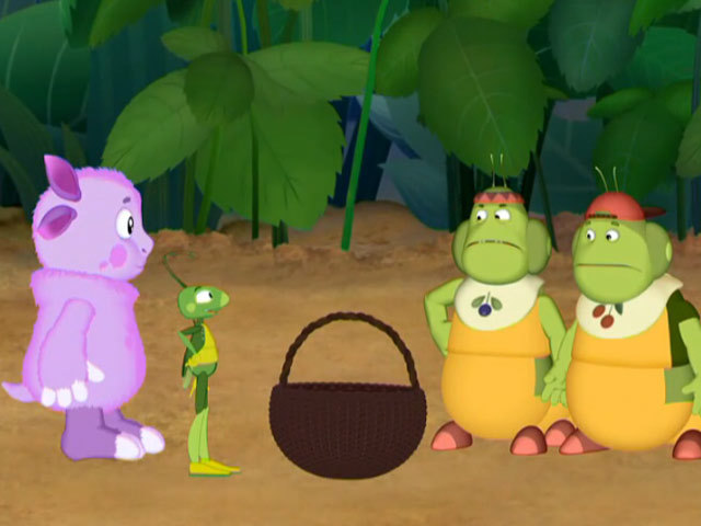 Вупсень и Пупсень поспорили с Кузей, что кузнечик не сможет сорвать клубничку, которая высоко растет. Кузя справился с заданием!