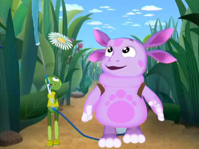 Лунтик и Кузя взяли аппарат для поливки, чтобы поиграть. Но каждый предмет надо использовать только по назначению.