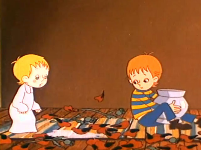 Два брата отправляются в ночное путешествие за цветами в подарок для своей мамыРежиссер: Л. Каюков.