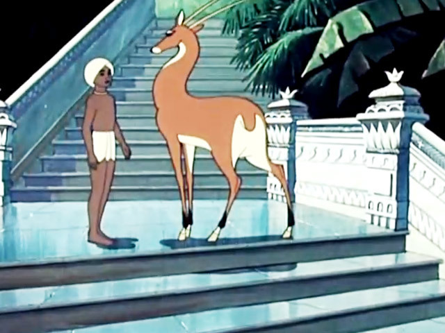 Злой и жадный раджа хочет завладеть чудесной антилопой, которая высекает копытами золотые монеты.Режиссер: Л. Атаманов.